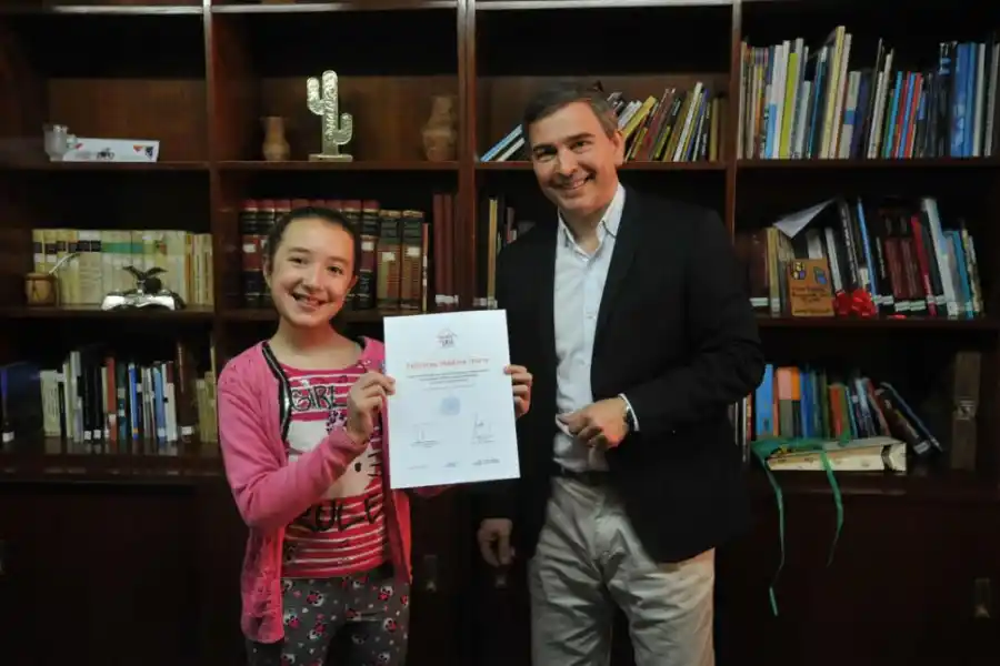 Catalina Suárez Bellanti no puede borrar su sonrisa mientras recibe el diploma. “Mis papás me dicen que siempre fui de reírme mucho, yo sé que soy muy exagerada cuando hablo y me gusta hacer Gracias a su video “Cata cuenta unos chistes” fue elegida por el jurado como ganadora de la categoría stand up infantil. Impulsada por sus padres se animó a grabar el video, que juntó 102 votos.