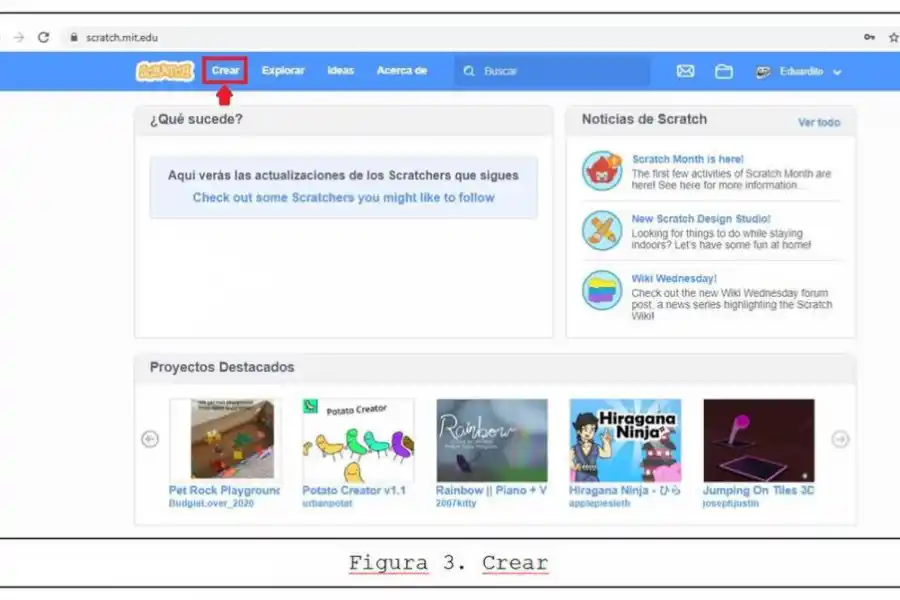 Ingresamos a la página de Scratch (https://scratch.mit.edu/). y nos registramos. (figura 2).