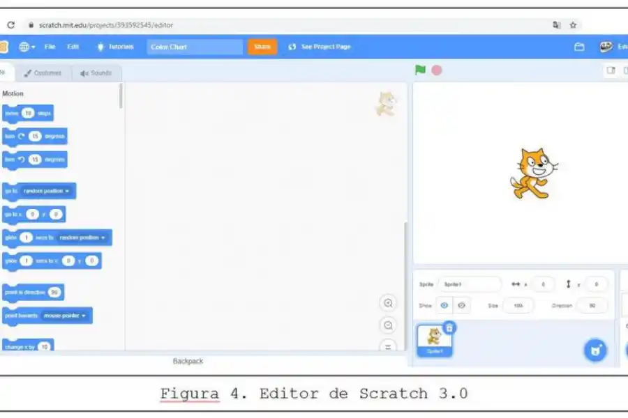 4- En la figura 4 podemos ver el entorno de programación de Scratch.