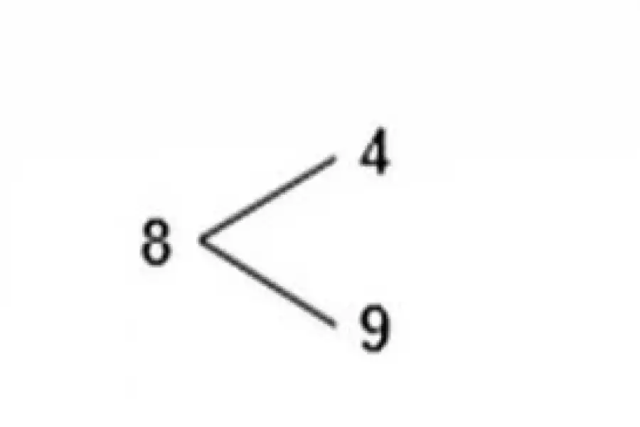 Nicolás hace árboles para ordenar los números. Si quiere armar números de 2 cifras con 4, 8, 9 y ordenarlos, él hace así: