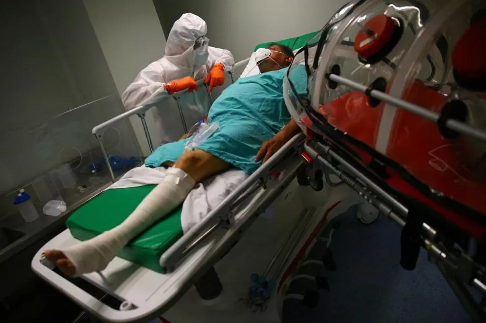 RIESGO. Un paciente es llevado de un hospital a otro en una cápsula de aislamiento, en Ciudad de México. Reuters