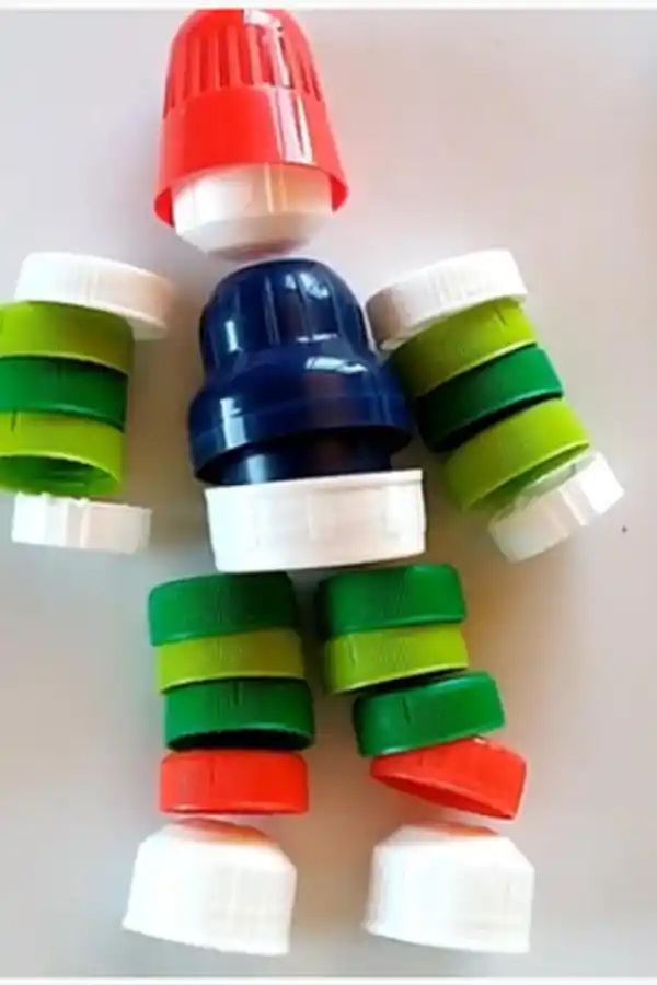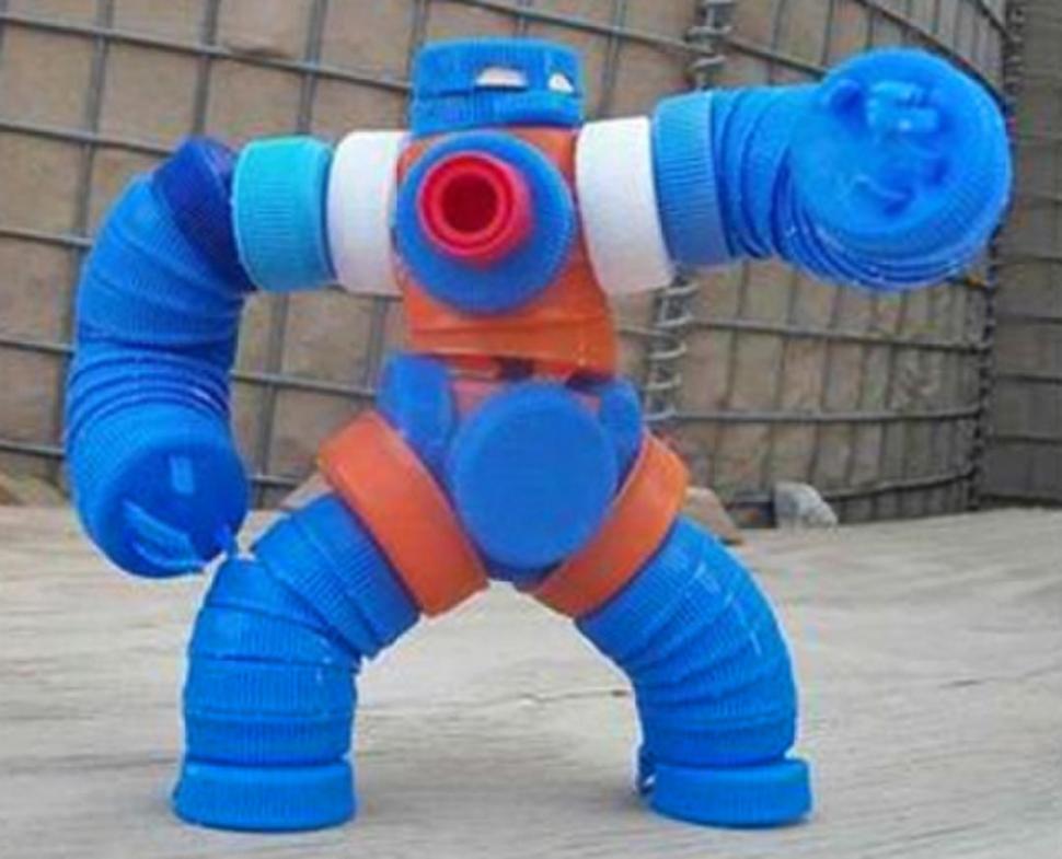 Construir tu propio robot reciclado, utilizando tapitas de botellas.