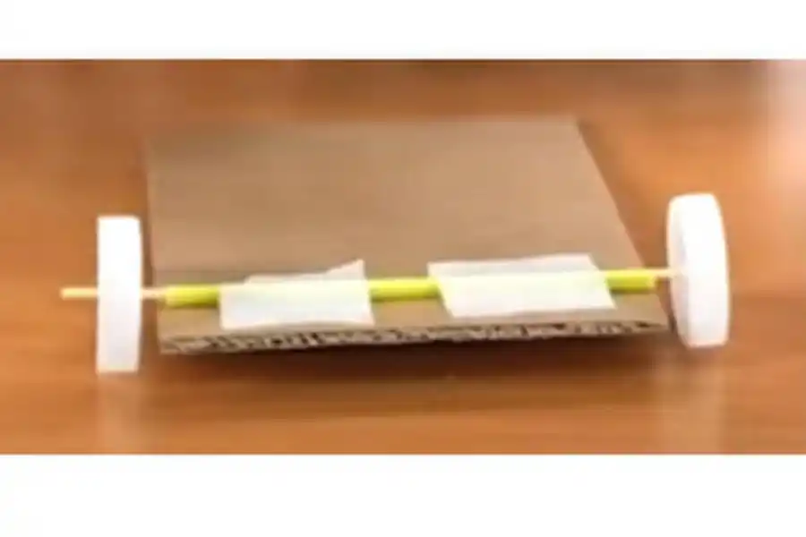 2 -Cortar al medio un sorbete, medir que el mismo no pase los lados del cartón y pegarlos con cinta de papel uno en cada extremo; estos deben quedar bien fijos.