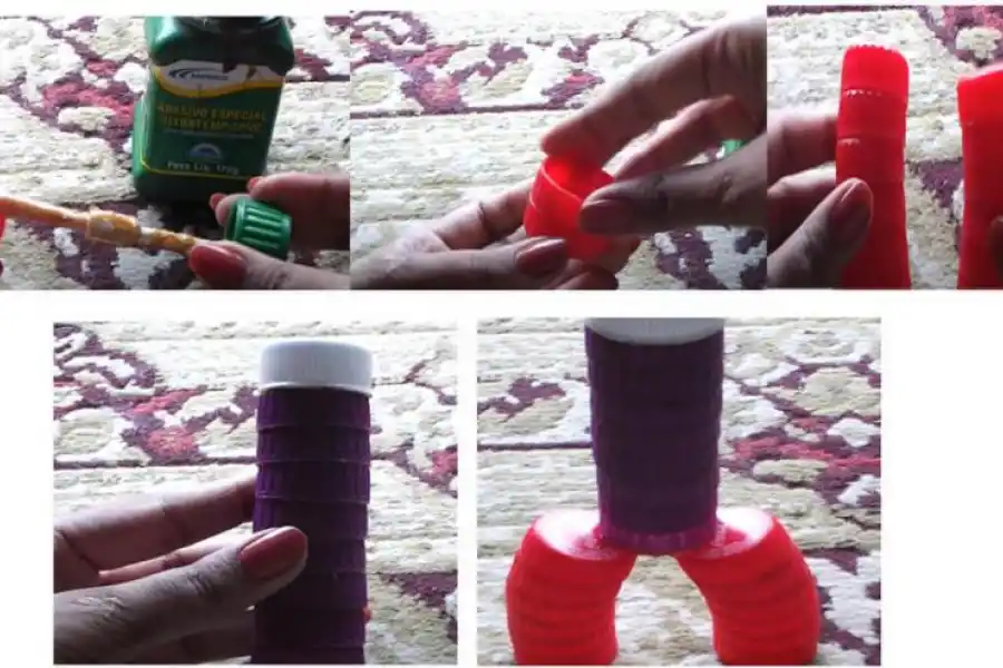 a) Puedes usar un pegamento o pistola de silicona para ir pegando las tapitas usa sobre otra