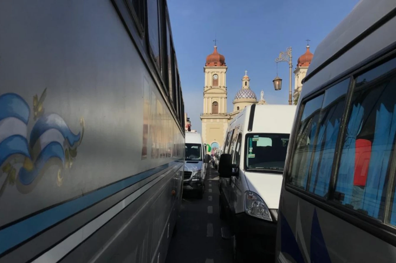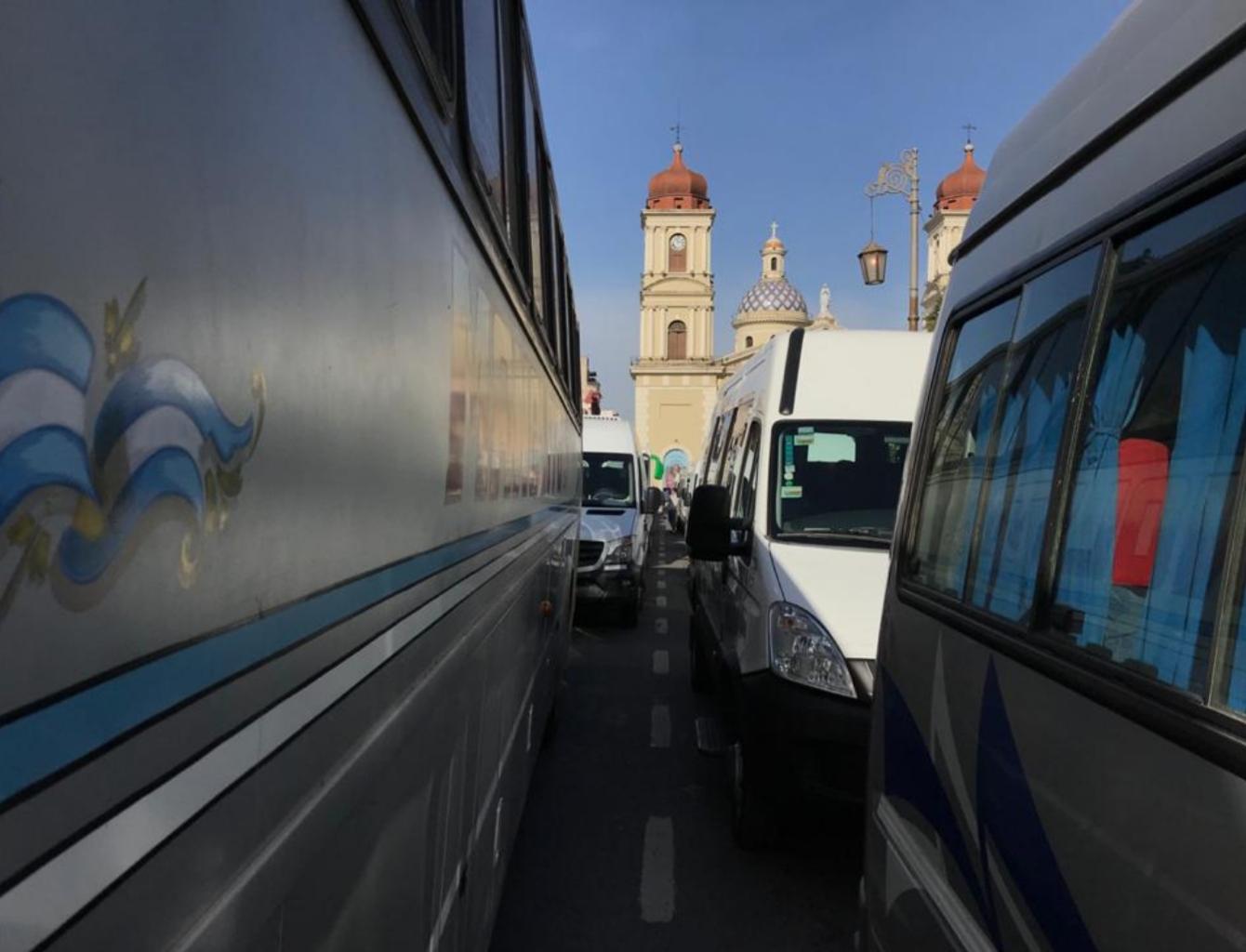 Los transportistas de turismo bloquearon la plaza Independencia para pedir ayuda