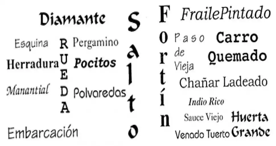 A) Te proponemos que junto alguien de tu familia, leas estos topónimos que están en el cuadro. Capaz que conocen alguno de esos lugares y pueden saber su ubicación, algunas características, por qué tiene ese nombre entre otros datos.