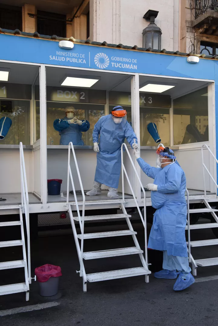 TESTEOS. En la clínica móvil de la Plaza Independencia se realizan hisopados a determinados grupos poblacionales. la gaceta / Foto de José Nuno