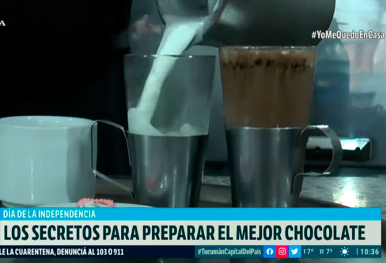 Maximiliano, el encargado de un local especializado de la capital, contó qué consumen los tucumanos en estos días de bajas temperaturas y para el Día de la Independencia. Según expresó, sus clientes eligen entre tres tipos de chocolates: el “tradicional chocolate”, con cacao y leche; conocido submarino caliente, y el “chocolate puro español” con churro.