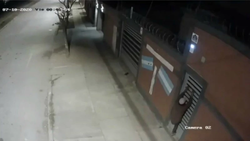 Ocurrió esta madrugada, pasadas las 00.40. En la filmación se ve como uno de ellos se trepa de una puerta mientras el otro vigila. El alambre de púa al terminar la pared, les impidió ingresar como ellos querían pero siguieron intentándolo.