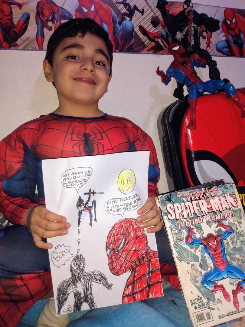 La imagen corresponde al momento en que Peter Parker tira su traje a la basura para tener una vida normal. “Aprovechamos una noche fría y con lluvia. Utilizamos el palier del edificio donde vivo para simular un callejón; apagamos las luces para generar la sombra del personaje; puse mi ropa de Spiderman sobre una valija que reemplazó el cesto de basura y traté de pararme igual a como lo hace en la película. De todas las que hizo es mi favorita, porque tiene mucha acción”, describe a sus siete años.
