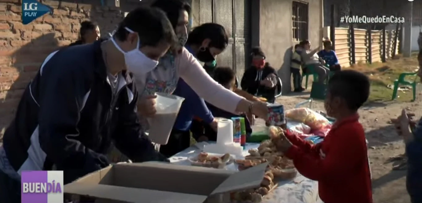 Se reúnen cada domingo para ofrecer la merienda a unos 60 chicos del barrio Julio Abraham, en Alderetes. “Surgió distribuir chocolate porque hay mucha necesidad aquí. Los niños salen a vender porque sus padres no tienen trabajo”, manifestó Romina Fuensalida, una de las organizadoras.