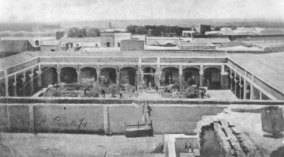 EN 1870. El patio del colegio cuando funcionaba en el edificio donde hoy está la Escuela y Liceo Vocacional Sarmiento.