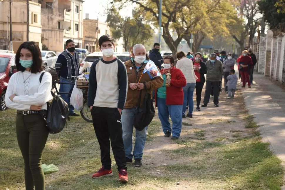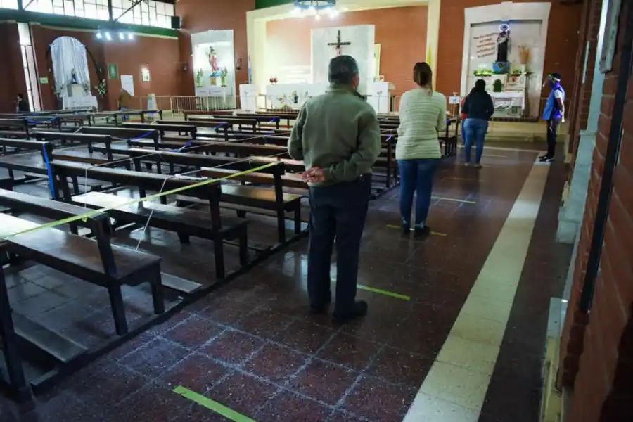 La parroquia estuvo abierta desde la mañana, se cerró a la siesta para la misa “virtual”, transmitida en vivo por canales de aire y por redes sociales. Distanciados, unos cuantos devotos fueron a presenciar desde afuera el oficio, aunque no había parlantes ni pantallas gigantes. Nada debía llamar a la aglomeración. Aún así, la fe hizo su trabajo. “A agradecer por lo poco que uno tiene y a pedir por los que les falta todo”, resumió Teresa Arancibia.