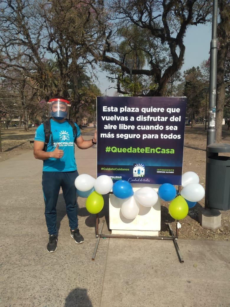 Con el fin de concientizar a los vecinos en tiempos de pandemia, la Municipalidad de San Miguel de Tucumán realizó una campaña con carteles para que los tucumanos eviten aglomeraciones en los espacios públicos.