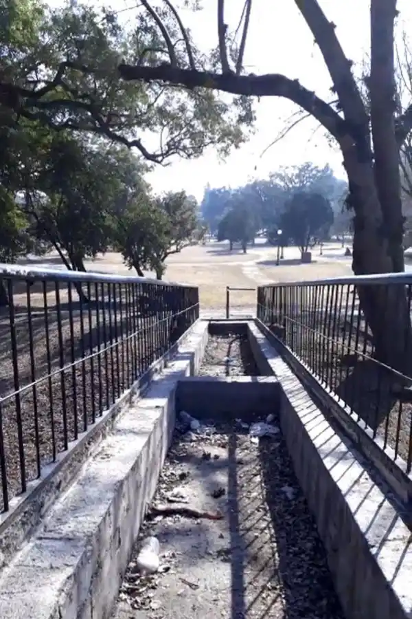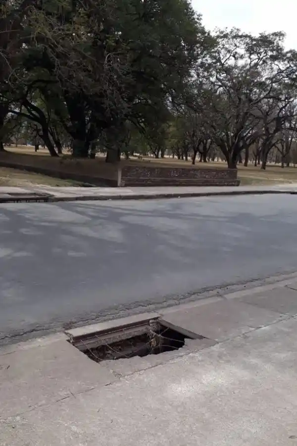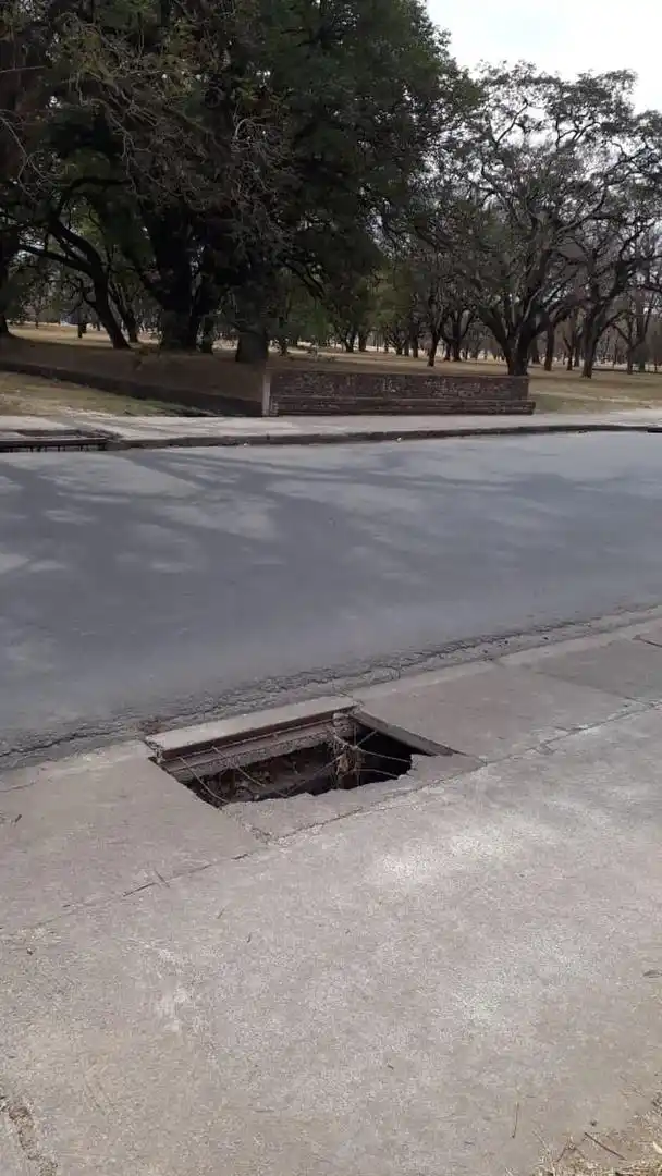 Se trata de tres roturas en la vereda que cubre el canal que atraviesa el parque 9 de Julio sobre avenidas Las Tipas y Carlos Thais, dice un lector que advierte del peligro.