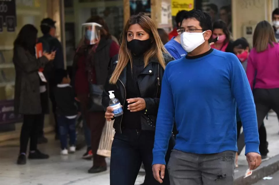 En las calles tucumanas se puede observar de todo. Si bien el uso del tapabocas es la norma general, numerosos peatones no lo emplean bien. Con la curva de contagios en ascenso, cumplir las normas sanitarias es un imperativo cada vez mayor.