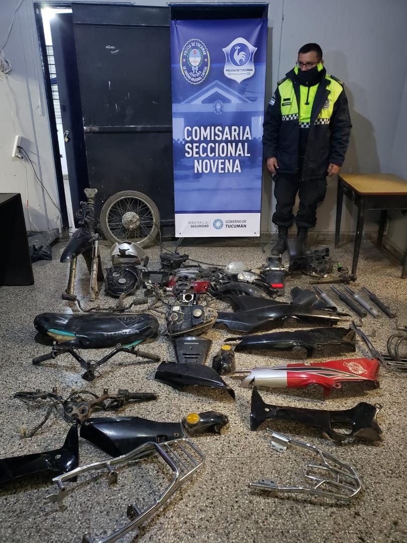 Tanques de nafta, un circuito eléctrico completo, faros, detalines, cilindros, posa pies con cables de freno, barrales, cachas, porta equipajes, asientos con funda y manubrios, entre otras cosas; todo un taller encontraron los efectivos de la comisaría 9ª durante un allanamiento en una casa de pasaje Einstein al 1.400, al sur de la capital. Las partes pertenecen a motos de cilindrada 110. Los elementos quedaron secuestrados y a disposición de la fiscalía de Robos y Hurtos.