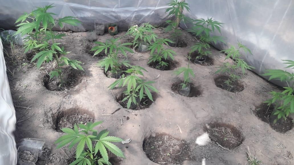 Inmediatamente se trasladaron al lugar y encontraron en medio del monte un precario vivero construido con postes de madera, tela metálica y plásticos, en cuyo interior había 19 plantas. A 100 metros de distancia, encontraron un segundo vivero con cinco plantas más, con una altura de entre 20 y 30 centímetros.