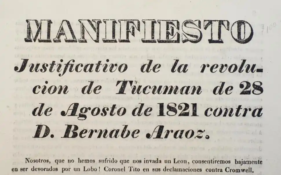 El 14 de agosto de 1820 salía a la calle el periódico oficialista “El Tucumano Imparcial”. Era el primer diario civil que ocupaba el espacio público en el norte argentino. Para su impresión se usó la pequeña imprenta que, tres años atrás, había incorporado el general Manuel Belgrano para publicar el Diario Militar del Ejército del Perú. Ahora, en manos del gobierno de la República, lo redactaba don Pedro Miguel Aráoz, canónigo y tío del Gobernador. Los números conocidos llegan hasta finales de ese año. Durante 1821, luego del golpe contra Bernabé Aráoz, se comenzó a publicar otro semanario, llamado “El Restaurador tucumano”, en apoyo de la gestión de Abraham González. Caía la responsabilidad de su edición en Juan José Dauxion Lavaysse, un francés que se había marchado a Santiago en disenso con el régimen de Aráoz. La imprenta siguió activa hasta la década de 1850. Haciendo una evaluación de los impresos que salieron de su bandeja, vemos que sirvió para todo: se imprimieron diarios, disposiciones, bandos, libros, valores de cambio y versos poéticos, pero es notable el interés que casi siempre despertó en la autoridad política.