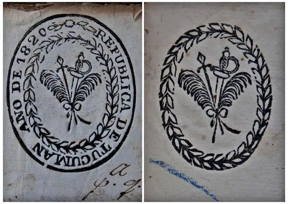 Los Estados necesitan de un aparato simbólico que los acompañe y ponga a la vista. Junto a las disposiciones, misivas y asambleas, un nuevo emblema comenzó a usarse en los papeles públicos. La imagen mostraba una espada y una lanza cruzándose en el centro, a sus lados se abrían dos plumas o ramas de palma. Alrededor, en forma de óvalo, una corona de laureles rodeaba el conjunto y sobre ella una leyenda rezaba “REPÚBLICA DE TUCUMAN. AÑO DE 1820”. La fuerza de las armas y la potencia del saber se conjugaban en su centro. Fue el sello de los documentos oficiales del gobierno mientras duró la República. Una vez derrocado Araóz, y durante mucho tiempo, la imagen heráldica continuó en vigencia, ya sin la orla de palabras que nombraba la República.