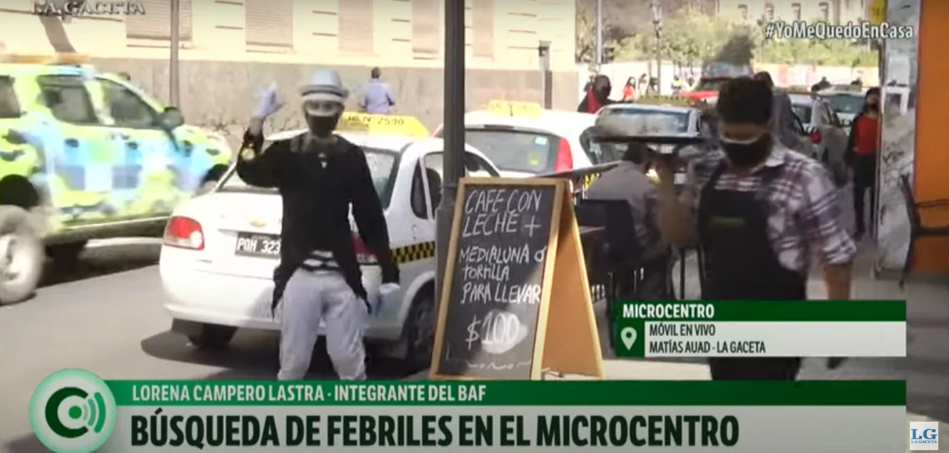 Durante el móvil de “LA GACETA Central”, los agentes sanitarios regalaron barbijos y explicaron cómo usar los distintos materiales de prevención. Un mimo también participó en la iniciativa, representando a la actividad artística, como una forma de comunicación con los transeúntes.