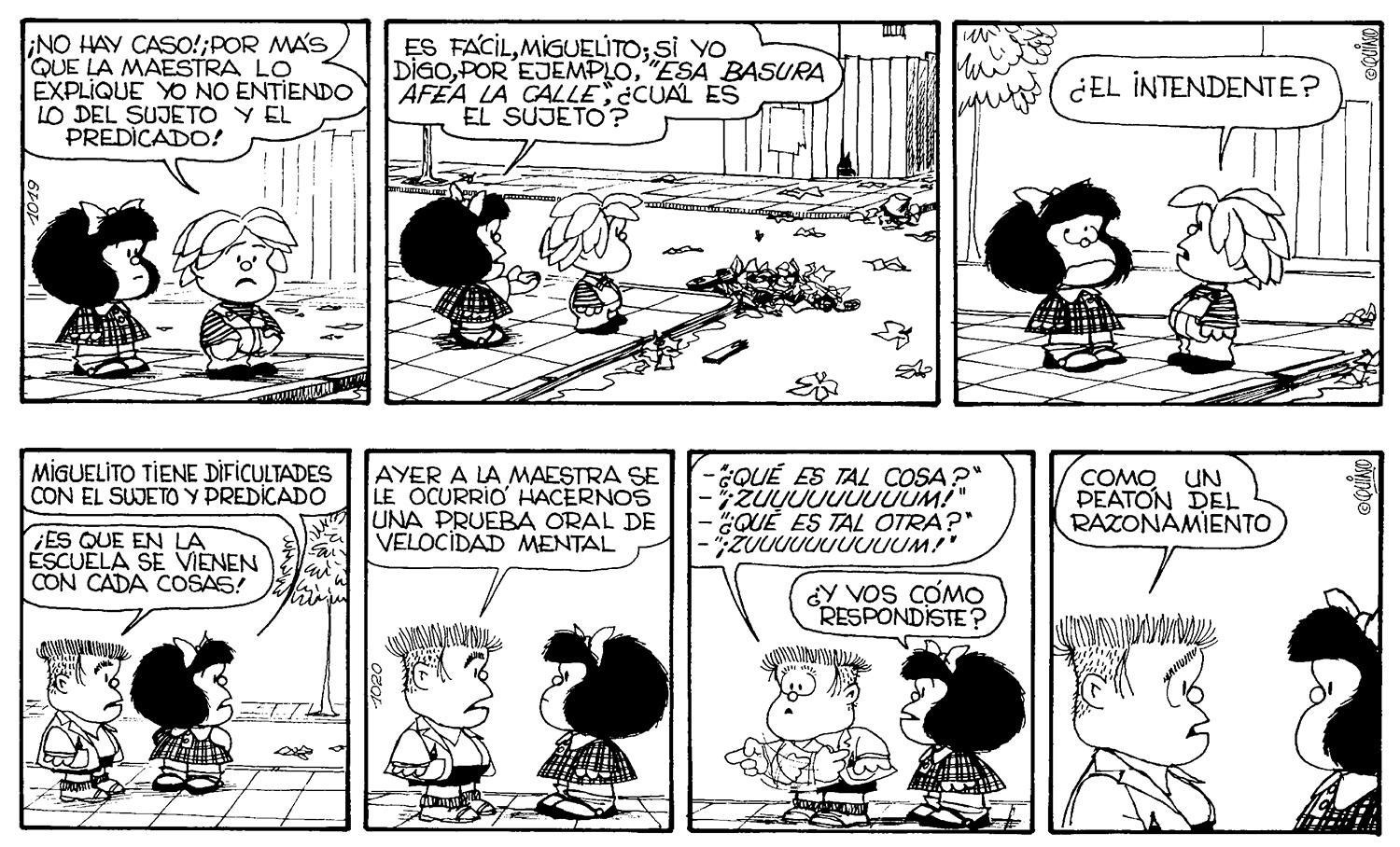 “Quino, omnipresente en la infancia y en la vida de muchos, realizó su obra bajo el influjo de las últimas fulguraciones de la espiritualidad moderna; tal vez por ello hasta haya ilustrado las clases de Filosofía de Julia A. de Nicolini en mi época de estudiante”, reflexiona Guillermo Siles, profesor asociado de Literatura Argentina II en la Facultad de Filosofía de la UNT.