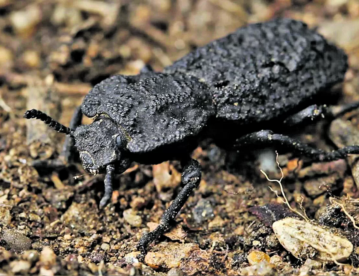 La supervivencia de este escarabajo, denominado Phloeodes diabolicus, depende de dos factores clave: su capacidad para hacerse el muerto de manera convincente y un exoesqueleto que es una de las estructuras más duras y resistentes al aplastamiento conocida en el mundo biológico.