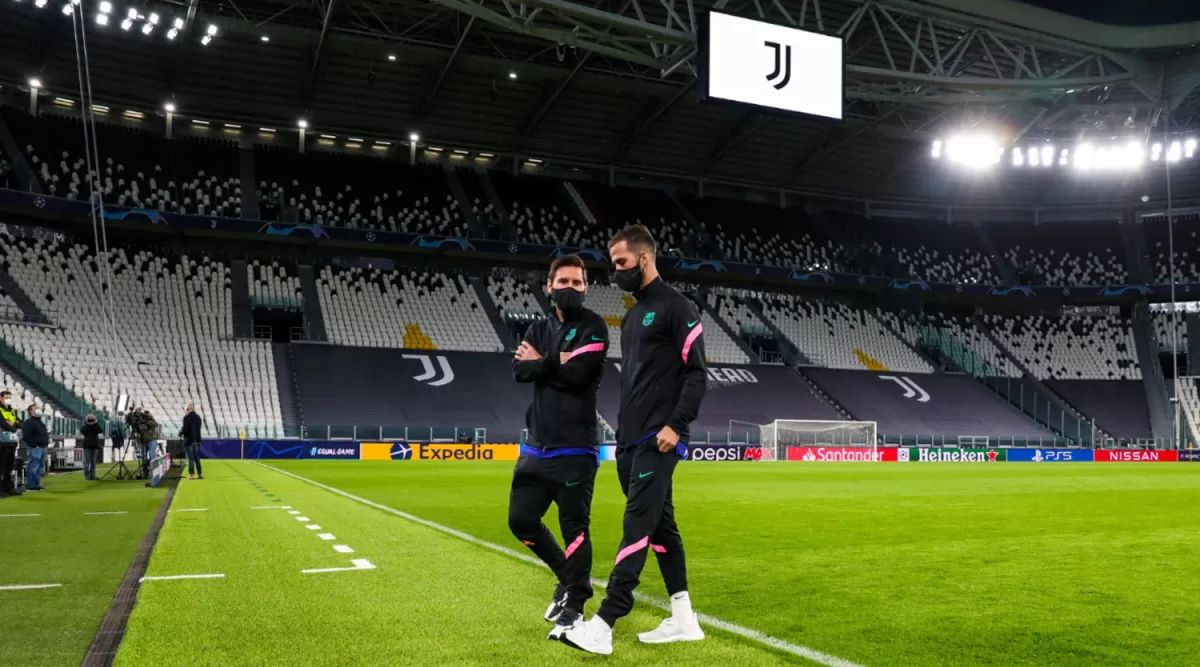 EL LÍDER. Messi recorrió el estadio de Juventus junto a Pjanic. FOTO TOMADA DE TWITTER.COM/BARCELONAFC_ES