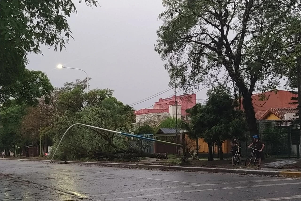 Duró pocos minutos, pero con un viento fuerte que tiró abajo árboles y carteles, además del granizo que ocasionó daños en algunas viviendas.