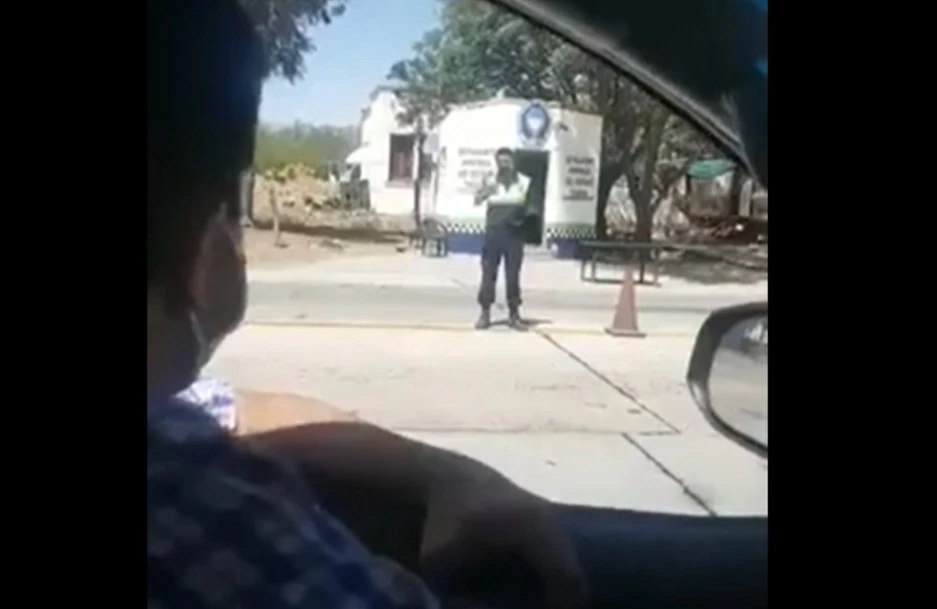 En las imágenes puede verse a un uniformado en el puesto policial ubicado en la ruta nacional 157, en el límite con Santiago del Estero. Desde el vehículo, los viajeros le piden explicaciones.