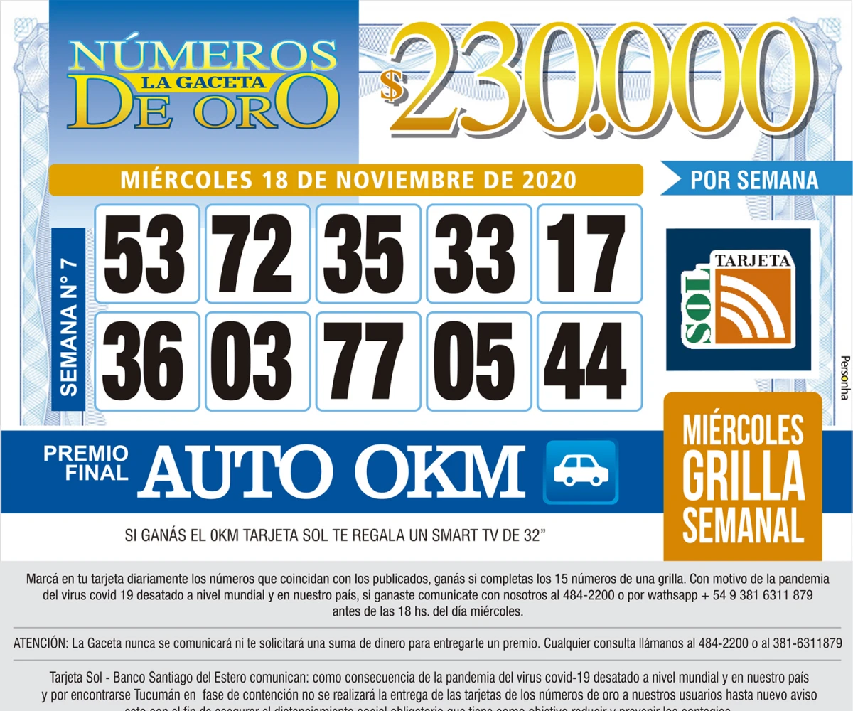 Los Números de Oro de LA GACETA del 26 de diciembre de 2025