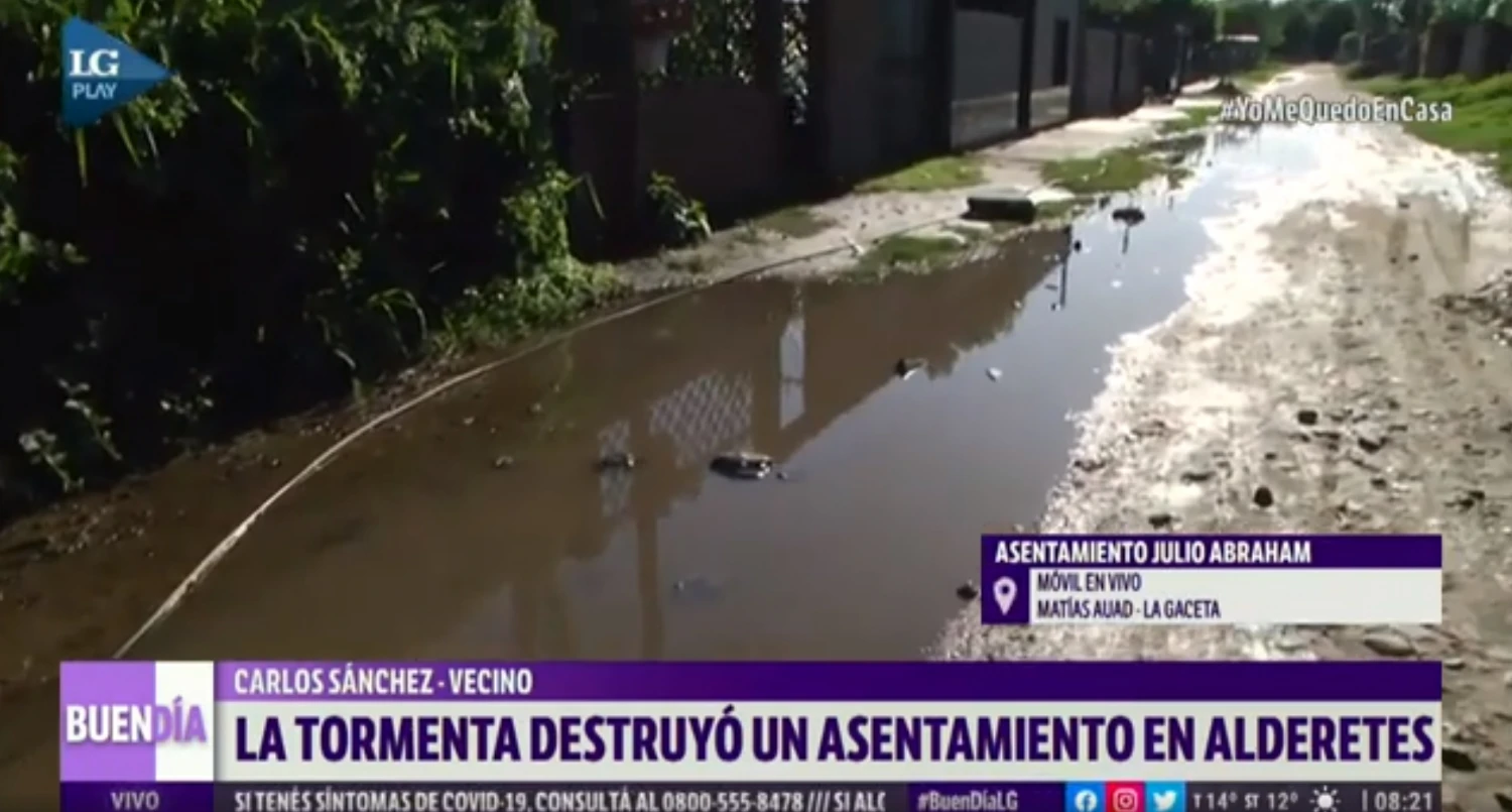 Los vecinos de esa zona de Alderetes contaron que las precipitaciones formaron algo similar a un canal, que se abrió paso entre las viviendas. Señalaron que el mal estado de las calles de tierra y piedra avivó también el riesgo el anegamiento en el vecindario.