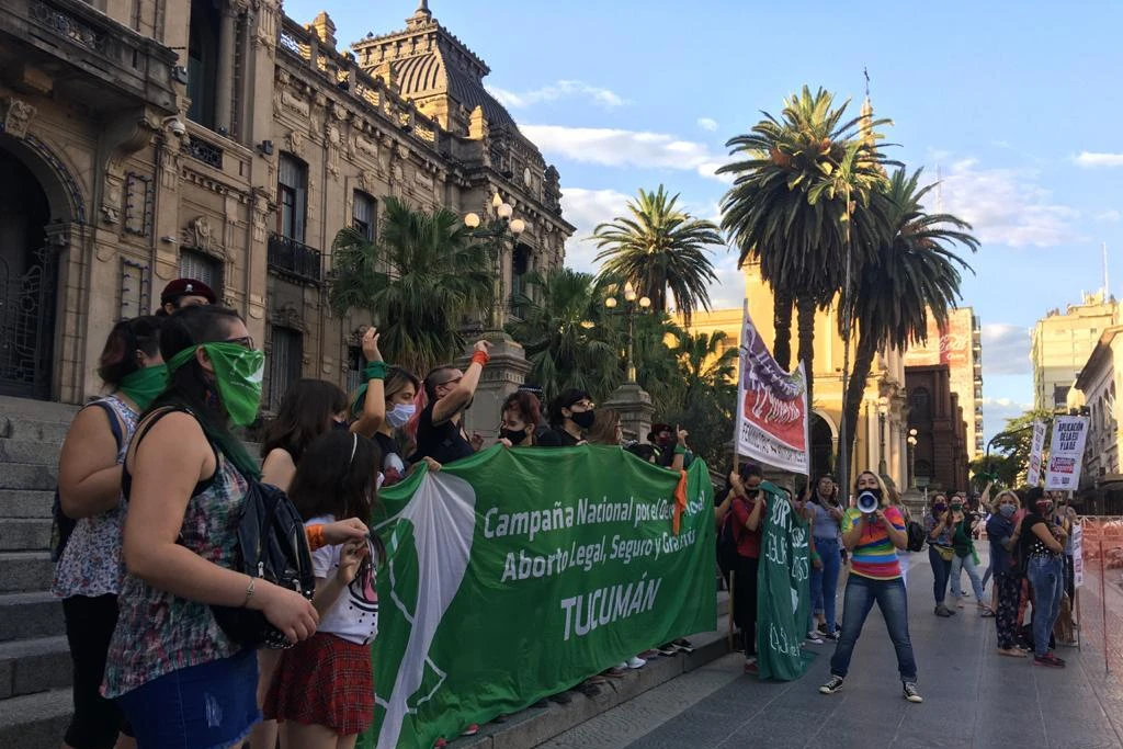 Agrupaciones feministas y mujeres autoconvocadas se reunieron esta tarde frente a la Casa de Gobierno con sus pañuelos verdes para exigir que se apruebe el proyecto de legalización del aborto que el presidente Alberto Fernández envió ayer a la Cámara de Diputados. Es el tercer miércoles consecutivo que protestan bajo la misma consigna en Tucumán.