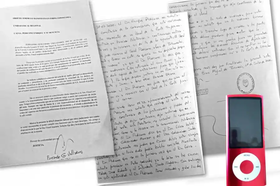 Valladares se presenta ante el Ministerio Público Fiscal y declara que el acta manuscrita del 28 de julio no es veraz. El actuario manifiesta que Pedicone le había dictado el contenido del instrumento público y que él obedeció “por temor reverencial”. Consultado al respecto, Pedicone afirma que había grabado también al funcionario judicial antes y después de presentar la denuncia “porque sabía que iban a ir por él y el acta”.