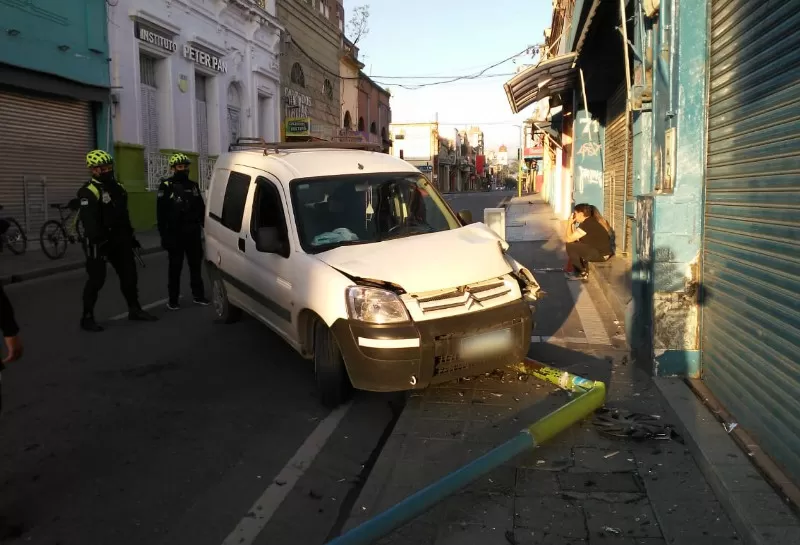 El incidente ocurrió alrededor de las 7. La camioneta quedó sobre la vereda y el alumbrado cayó. Bici policías asistieron a los pasajeros que, según las primeras informaciones, no sufrieron heridas de gravedad.