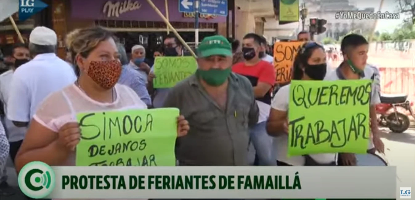 Comerciantes de Famaillá reclamaron hoy “poder ingresar a trabajar en la feria" de Simoca. Alrededor de 30 personas se manifestaron frente a la Casa de Gobierno este mediodía para expresar sus críticas al intendente simoqueño Marcelo Herrera.