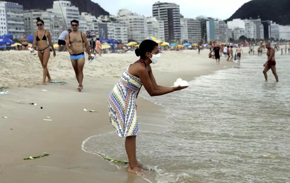 COPACABANA. Una religiosa afrobrasilera rinde homenaje a la diosa del mar, Yemanja, durante la celebración de Año Nuevo, en Río de Janeiro, Brasil. FOTOS REUTERS