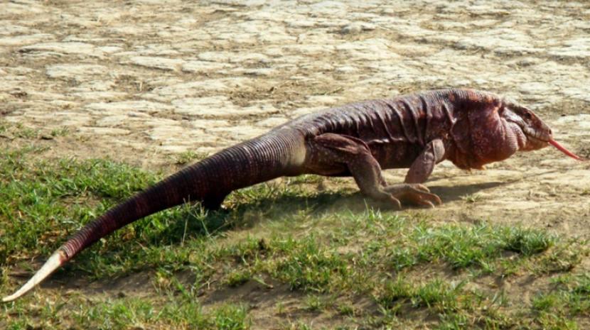 Técnicos de la Dirección de Flora, Fauna Silvestre y Suelos de la provincia (DFFSyS) liberaron un ejemplar de Caraguay (Salvator rufescens) en la loclalidad de Ticucho, que había sido rescatado por la Fundación FARA en Villa 9 de Julio.
