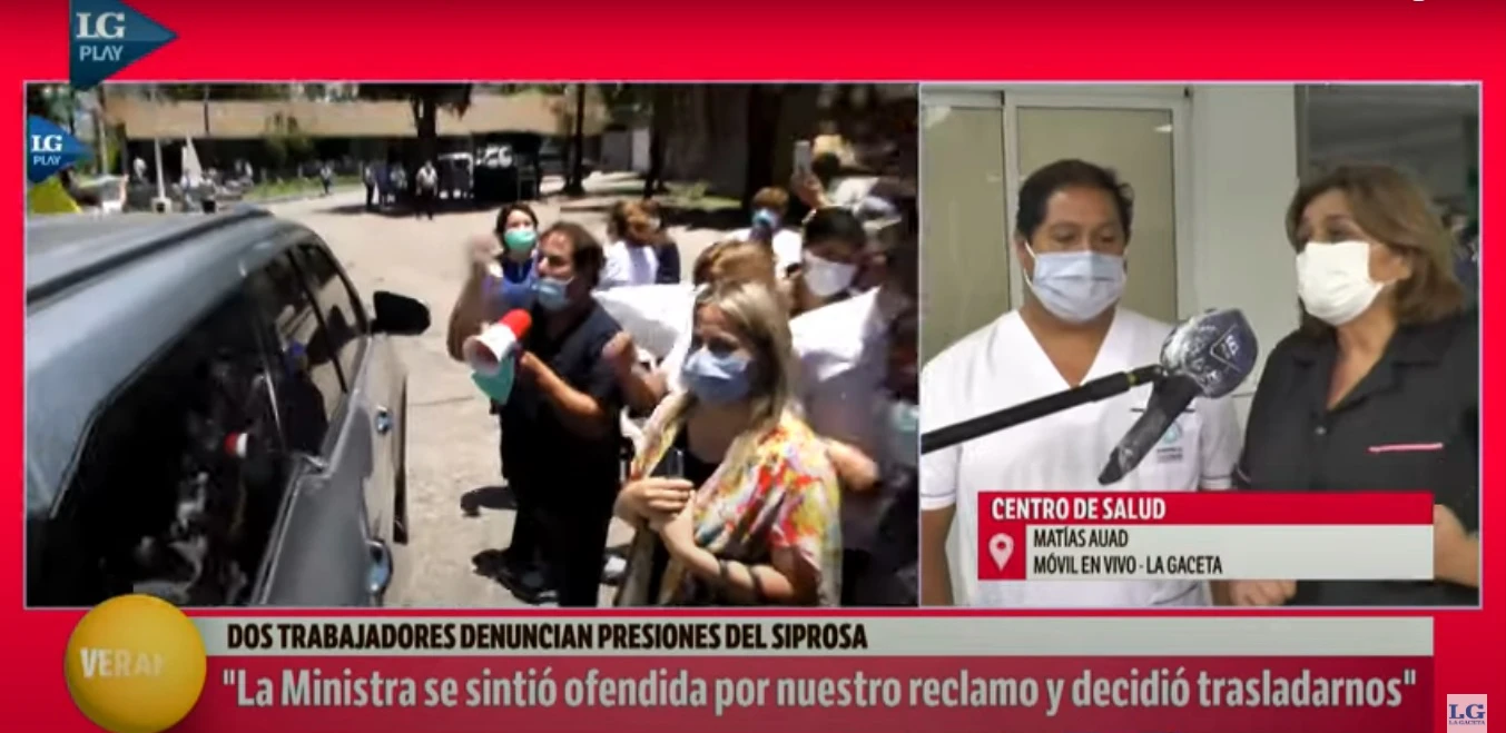 En esa jornada, un grupo de enfermeros y médicos “escrachó” a la funcionaria manzurista para reclamar el cumplimiento de las vacaciones, descansos y la recomposición salarial. Al menos dos enfermeros recibieron notificaciones de traslado desde el Centro de Salud a distintos Centros de Atención Primaria de la Salud (CAPS), sin confirmación de funciones, “por haber ofendido a la señora ministra al reclamar nuestros derechos”, según indicaron Silvia Posadas y Alfredo Mena.