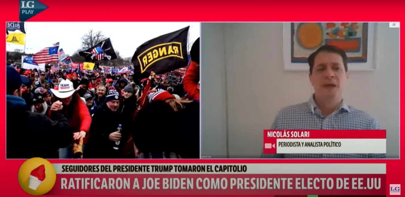 El periodista también señaló, entre otras referencias, que las manifestaciones fueron "la culminación de un proceso motorizado por Trump durante sus cuatro años (de gestión), atacando a las instituciones democráticas de EEUU”.