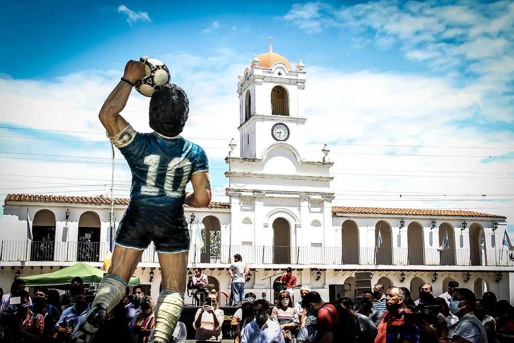 "La mano de D10S" es el nombre de la estatua realizada por los escultores locales Bruno Salica y Ángel Moreno, y que desde hoy forma parte del paseo de los emprendedores, ubicado frente al parque temático histórico que tiene "La capital de la empanada".