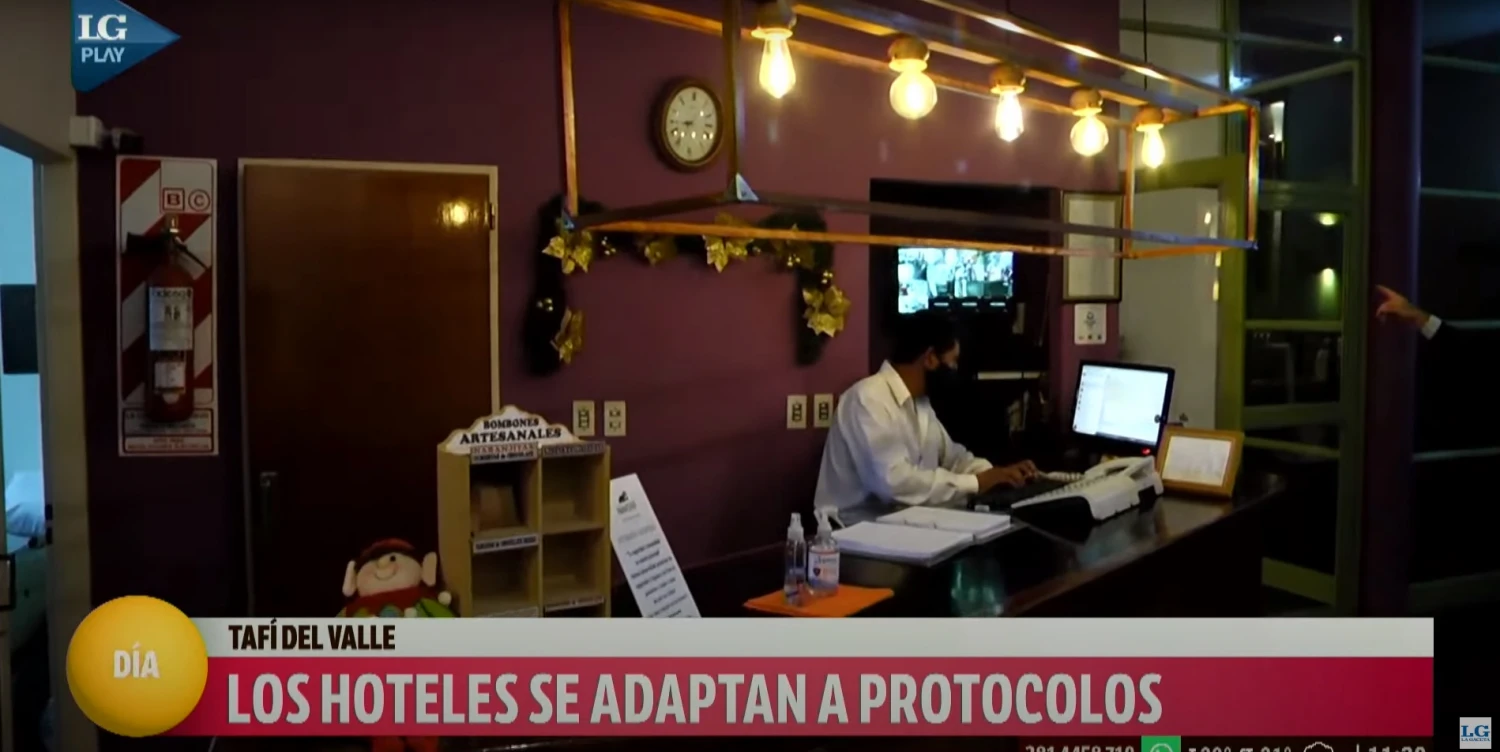 El equipo de LG Play estuvo en el hotel Tafí para mostrar cómo se aplica el protocolo sanitario pare evitar los contagios de coronavirus. El uso del barbijo y alcohol, y el distanciamiento social, las principales normas en el lugar.