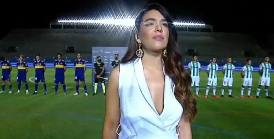La cantante de cumbia Ángela Leiva cantó el Himno Nacional antes de la final entre Banfield y Boca, por la copa Diego Maradona. Su interpretación fue furor en las redes.