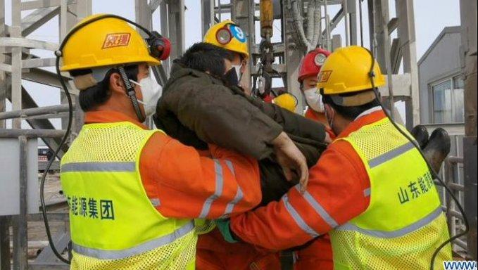 Rescatan a 11 mineros atrapados durante dos semanas en China. Foto tomada de @CGTNFrancais