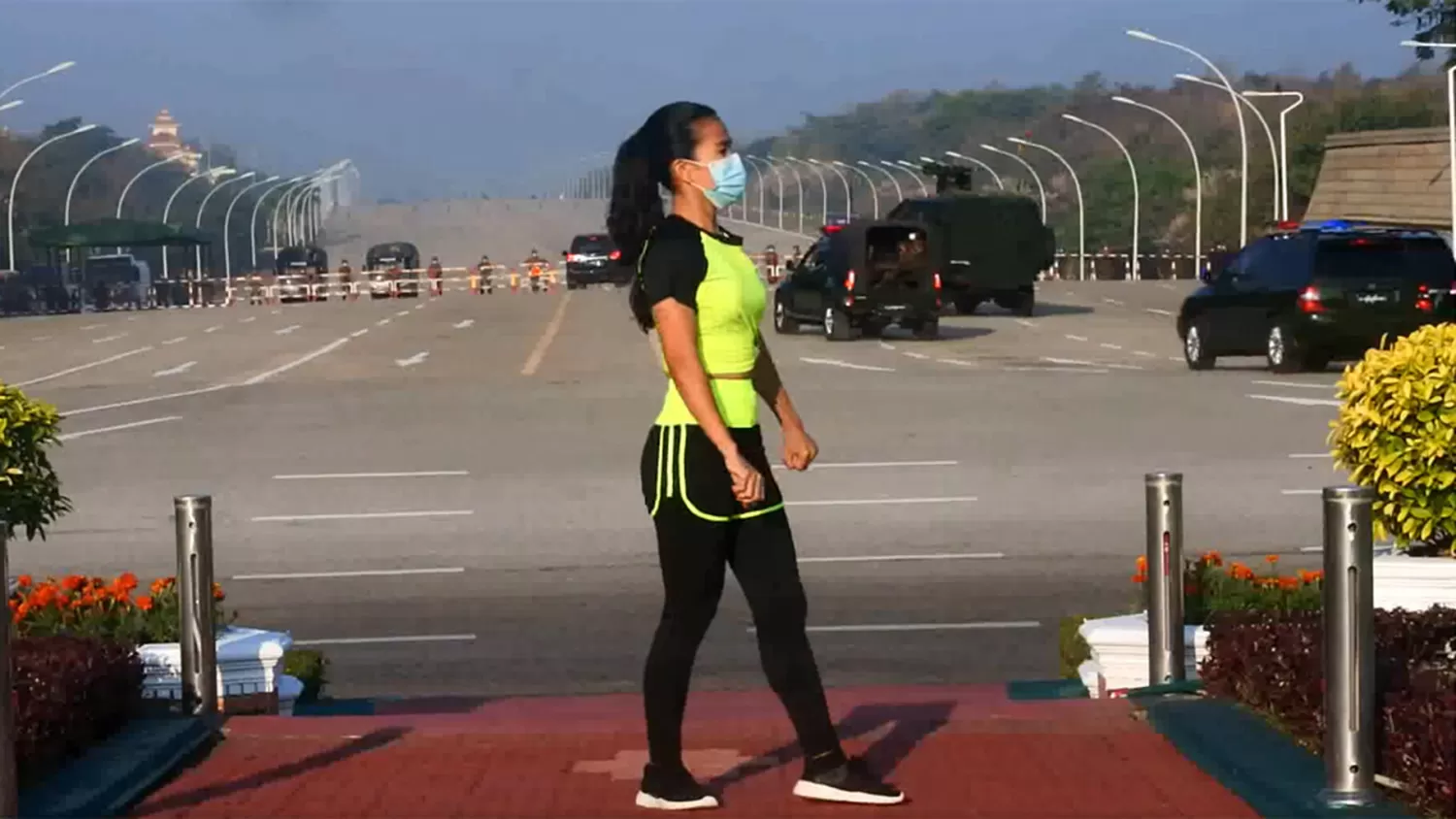 En ese mismo lugar, uno de sus videos de un entrenamiento de aerobic captó cómo los militares llegaban a dar el golpe de Estado en Myanmar.