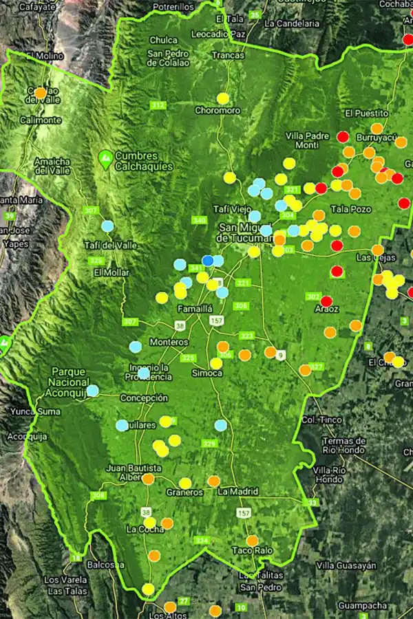En tanto, “a diferencia de la llanura, en el pedemonte se observaron valores por encima del promedio de referencia o muy muy cercanos a él, salvo en el extremo norte de la misma, donde hubo valores muy por debajo del promedio de referencia”.