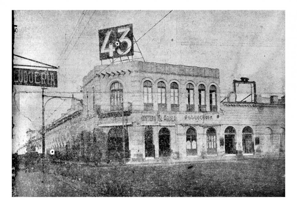 En la esquina de calles Laprida y San Martín se ubicaba la confitería "El Águila", antes de que se levante el Banco de la Provincia. A mediados de los años 1920 ya se encontraba en estado de decrepitud, tal como lo muestra esta foto impresa en nuestro diario. Poco después sería demolida para empezar la construcción del banco.