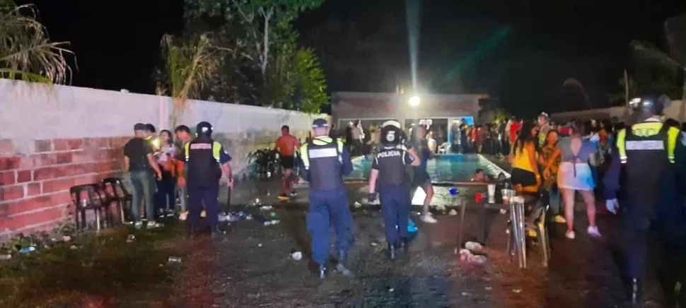 A LA CASA. Policías desalojan una fiesta que se hacía en Famaillá.