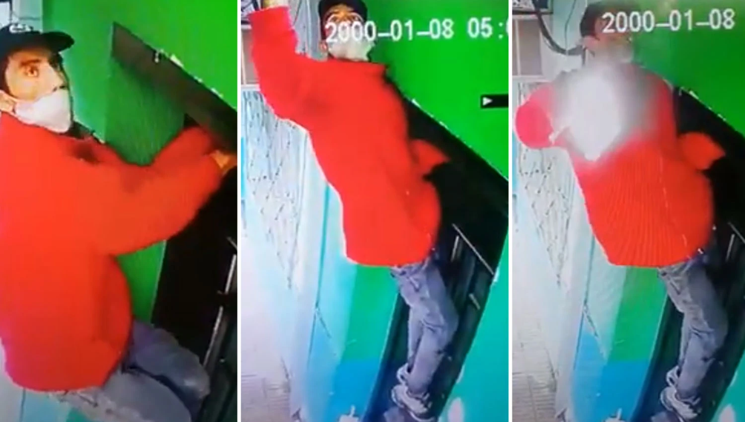 Video: ¡Robó un portalámparas a pesar de que estaba prendido!