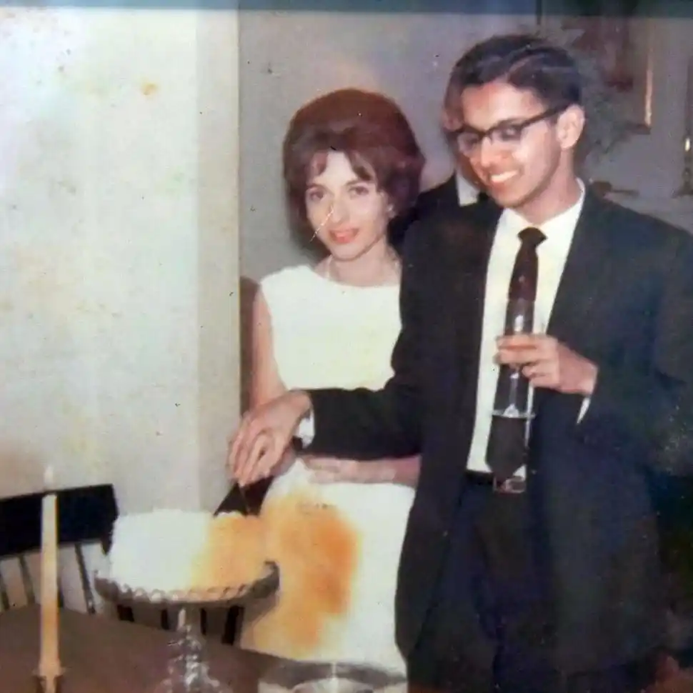 - N: Terminé mi pregraduado en Bangalore, en La India, en el año 61. Tenía mucho interés en estudiar en Estados Unidos el posgraduado porque mi abuelo materno había estado allí entre 1919 y el 21, era vicepresidente de una compañía de electricidad de una provincia, por eso el gobierno lo mandó para una capacitación en General Electric, en Connecticut. En la India, es común que cuando un muchacho tiene éxito, hay familias con hijas que quieren arreglar los matrimonios, con la condición de que ellos pagan todos los estudios del joven. Mi abuelo me dijo: “vos tenés que ir sin compromisos, porque sos joven, tenés que disfrutar y tener opciones”. Tuve mucha suerte. Terminé mi pregraduado allá en ingeniería electrónica; había una oficina de Estados Unidos para pedir ayuda para hacer estudios en ese país. Por casualidad, llegó una pareja que conocía a mi abuelo y eran vecinos, y el hombre dijo que yo tenía que ir a estudiar al Estado de Nueva México. Me prestaron dinero para el pasaje. Llegué Estados Unidos en agosto del 61, pero no tenía ninguna beca, solo un poco dinero para vivir por seis meses o un año. Queli estudiaba inglés en la UNT y ganó una beca por un año en el 62. No tenía preferencia de universidades; por casualidad, eligió la misma universidad, donde yo estaba yo. Yo era vicepresidente de un pequeño grupo de estudiantes extranjeros, y en los primeros días que ella llegó, fui a darle la bienvenida. Vi a esta chica como si fuera Sofía Loren, con guantes, una pollera y todo… (se sonríe con ternura) Muy interesante. El presidente era un chico de Camboya, mi amigo.